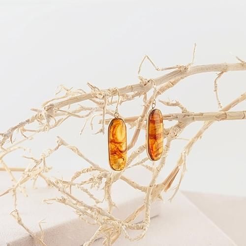 軽やかに揺れる、柔らかな琥珀の輝きが耳元を彩ります。